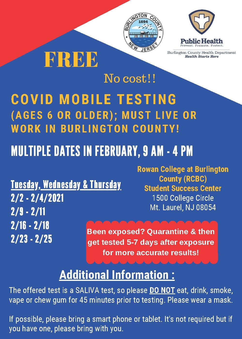 Burlington County On Twitter The Burlco Health Department Is Offering Covid 19 Mobile Testing Clinics This Week Clinics Will Be In Florence Amp Bordentown See The Flyer For Dates Times Exact Locations Amp